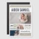 Cartes photos bébé magnétique imprimé sur mesure et abordable. Ce design moderne minimaliste dispose d'un montage photo de 3 blocs de couleur neutres qui peuvent être customisés en changeant la couleur arrière - plan en n'importe quelle couleur. Personnalisez-le avec le nom du bébé, les statistiques de naissance et vos photos. Utilisez les outils de conception pour customiser des polices de texte et des couleurs pour créer un magnet unique de bébé pour votre nouveau-né.