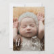 Envoyer un merci spécial à la famille et aux amis avec ce carte photo faire-part de naissance Le design simple comprend une photo sur le devant avec du Merci dans une typographie de script Le côté arrière comprend tous les détails importants y compris le nom du bébé, la date de naissance, les statistiques de naissance et un message de remerciement des parents.