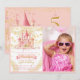 Célébrez votre petite princesse et son grand jour avec cette invitation de fête d'anniversaire de château rose fantaisiste ! Il s'agit d'un modèle d'invitation d'anniversaire pour enfants moderne facile à personnaliser avec des photos. Caractéristiques d'éléments de conte de fées dans un schéma de couleurs rose et or.