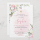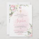 Un modèle de faire-part de première communion adorable avec des fleurs aquarelles roses et beige pour les filles.