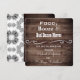 Une invitation de réception de mariage superbe. Une clôture en bois rustique et un motif floral vintage gris et blanc orné de perles. Sur la couverture figure l'annonce : "Nourriture, boissons alcoolisées et pas de danse maladroits". Ajoutez le nom des mariés. Personnalisation ligne par ligne au dos.