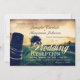 Faire-part de réception de mariage au poteau de clôture de champ de campagne avec une belle scène de paysage rural avec un champ et des arbres et un poteau de clôture avec le soleil couchant qui fait virer le ciel au jaune orange. Ces invitations de réception de mariage sont idéales pour les mariages rustiques à la campagne. Modèle facile à éditer, il suffit de changer le texte pour en faire votre propre invitation personnalisée.