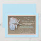 Une réception après le mariage est un excellent moyen de célébrer votre mariage. Pourquoi ne pas commencer la célébration avec une invitation à une réception après le mariage sur le thème de la plage ? Ce design présente une photographie de scène de plage d'un coquillage, d'une étoile de mer et d'un dollar de sable sur une toile de jute couleur beige. La photographie est bordée de blanc et de pêche avec une bordure bleue de plage plus large. Vous pouvez personnaliser l'invitation à la réception après le mariage avec tous les détails de votre réception après le mariage ; et vous pouvez également écrire où et quand vous vous êtes mariés ! Une excellente façon sur le thème de la plage d'inviter vos invités à un événement après le mariage. Copyright henishouseofpaper