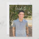 Une carte de faire-part de remise de diplôme avec une police d'écriture moderne, une photo de portrait en pleine page au recto avec le nom, l'année de promotion et les détails de l'école. Le verso comporte une deuxième photo avec des détails supplémentaires.