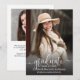 Faire-part de remise de diplôme avec photo et écriture élégante, carte de fin d'études avec police script et photo de portrait en pleine page sur le devant avec nom et détails de la remise de diplôme. Le verso comporte une deuxième photo avec des détails supplémentaires. Cliquez sur le bouton modifier pour personnaliser ce design.