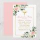Carton d'invitation pour la fête de remise de diplôme d'infirmière ou de l'école de médecine à motif floral aquarelle rose et or - Dos rose - Écriture rose et or