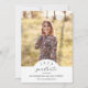 Cette élégante et stylée carte d'annonce de remise des diplômes photo présente un overlay photo en forme d'arc en blanc, ainsi que des modèles de texte pour une personnalisation simple. Le verso contient un modèle de photo 2 et des modèles de texte pour une personnalisation plus poussée, par exemple pour partager les projets d'avenir du diplômé !
