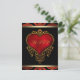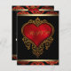 Réponse de mariage rouge, noir et or avec un cœur en satin rouge riche et un fond en damas rouge, noir et or. Cette réponse de mariage élégante en rouge, noir et or est facilement personnalisable avec les détails de votre événement.