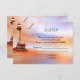 Invitation élégante pour répondre à un mariage ou carte incluse avec une peinture d'un phare sur la plage avec des mouettes au coucher du soleil. Cette carte correspond à plusieurs invitations de mariage et de mariée.