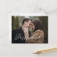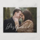 Cartes de report de mariage élégantes et stylées affichant votre photo de fiançailles horizontale préférée avec "Reporté" dans un script de calligraphie moderne blanc en surimpression. Personnalisez le recto de la carte de changement de plans photo en ajoutant vos noms et la formulation de report de mariage. Le verso de la carte postale comporte votre adresse de retour, vos noms, site web de mariage, etc.