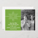 Annoncez votre mariage sur le thème des fêtes ou de l'hiver avec cette annonce de sauvegarde de photo de flocon de neige doux. Avec un flocon de neige blanc délicat et élégant et une fine bande sur un fond vert uni, ce design amusant est facile à personnaliser. Ajoutez simplement votre propre photo et les détails de votre mariage dans les champs de texte prévus ou cliquez sur "Personnaliser" pour trouver plus d'options de personnalisation.