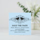 Annonce de sauvegarde simple et douce des tourbillons d'oiseaux d'amour avec des silhouettes d'une paire d'oiseaux fantaisistes et des cascades de fioritures élégantes sur un fond bleu clair. Cette invitation moderne de sauvegarde est facile à personnaliser avec vos détails de mariage. Cliquez sur "Personnaliser" pour trouver plus d'options de personnalisation.