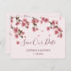 Ces cartes de sauvegarde de date présentent un motif de fleur de cerisier rose. Elles font partie d'une collection qui comprend une gamme complète de cartons d'invitation de mariage et de papeterie assortis. Veuillez visiter les pages de la collection dans notre magasin pour voir la gamme complète d'articles que vous pouvez personnaliser pour votre mariage.