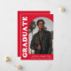 Faire-part de remise des diplômes élégant et branché avec la photo du diplômé sur le devant avec un cadre photo en arc décalé. "Graduate" est affiché en gras blanc rétro lettrage sur un arrière - plan rouge. Personnalisez l'avant du faire-part de remise de diplômes en photo en ajoutant le nom du diplômé, son école et son année de remise de diplômes. La carte s'inverse pour afficher 3 photos supplémentaires avec espace pour le texte personnalisé comme les futurs plans de collège, plans de carrière, détails de la fête de remise des diplômes, etc. Le faire-part rouge est parfait pour les diplômés du secondaire et du collège.