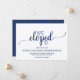 Ces cartes de faire-part navy simple calligraphie elopement ont un beau design élégant. Le design blanc et bleu présente une typographie rustique chic et un coeur romantique.