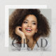 Cartes de faire-part de graduation "Photo" carrés modernes et audacieuses, avec des éléments de design de style foncé transparent, moderne et de style de mode lisant "GRAD", avec typographie minimaliste. La photo du diplômé sur le devant de la carte met en évidence toute la surface. Le dos de la carte offre des espaces de texte personnalisés pour des informations sur votre graduation et votre futur voyage. Idéal pour les personnes âgées du secondaire, du collège et de l'université.