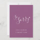 Désolez donc les invités qui devaient assister physiquement à votre mariage et déplacez-les vers votre événement de diffusion mariage à la place. Partie du coeur typographique simple correspondant dans le jeu de mariages violet et blanc. Idéal pour utiliser comme carte de mariage pour informer vos invités des changements de mariage que la pandémie ou d'autres changements vous ont forcé à réduire votre nombre d'invités et par conséquent déplacent les invités pour regarder à distance votre événement de streaming mariage en direct. Le libellé peut être modifié pour répondre à vos besoins et à vos détails de streaming. D'autres options de couleur sont disponibles. Design original par Sarah Trett pour www.mylittleedenweddings.com sur Zazzle.