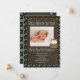 Hibou avec chocolat brun foncé et fond bleu avec des touches de vert, une façon super douce d'annoncer votre nouveau petit. ajoutez votre photo.