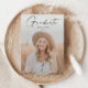 Faire-part de graduation de la photo d'un diplômé en Script moderne. Les couleurs peuvent être changées. Le dos comprend des détails supplémentaires et une deuxième photo. Cliquez sur le bouton personnaliser/modifier avec l'outil de conception pour customiser cette conception avec vos photos et texte.