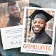 Carte de faire-part moderne avec votre photo et le texte "diplômé" dans une police moderne avec le nom de l'année et de l'école ci-dessous. Photo supplémentaire et message de remerciement personnalisé au dos. Texte bleu foncé sur arrière - plan blanc.