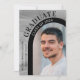 Célébrez votre classe de fin d'études secondaires 2024 avec cette faire-part moderne et élégante. Ce magnifique design gris et noir présente une arche avec une typographie moderne audacieuse. Facilement personnalisable avec votre photo et vos détails.