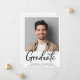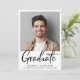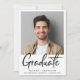 Faire-part moderne de remise des diplômes avec la photo de la diplômée et "Graduate" dans un script audacieux contemporain. Ajoutez leur nom, année de classe et école en typographie simple.