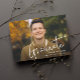Un diplômé de Script moderne Simple Photo Graduation Faire-part avec police manuscrite pleine saignée photo portrait sur le devant avec le nom et les détails de graduation. Le dos a une deuxième photo avec des détails supplémentaires. Cliquez sur le bouton Modifier pour customiser cette conception.