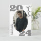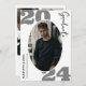 Ce faire-part de graduation simple et attrayant dit "diplômé" en police moderne délicate, blanche et élégante et présente votre photo personnelle préférée sur le devant. Le dos peut contenir des informations supplémentaires sur le diplômé, qui sera présenté dans un design minimaliste noir et blanc.