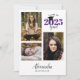 Ce faire-part de graduation propre et moderne offre un collage photo de 3 sur un arrière - plan blanc. Le design est accentué de violet sur un arrière - plan blanc.