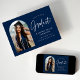 Faire-part tendance de remise des diplômes avec la photo du diplômé encadrée par un arc de marine avec "Graduate" dans une écriture manuscrite blanche. Personnalisez l'avant de la carte de faire-part de remise de diplômes en arc en ajoutant le nom du diplômé, l'année de remise de diplômes, le nom de l'école et les plans futurs. La faire-part de graduation de la photo s'inverse pour afficher un motif en pointillés blanc et marine. Le faire-part convient aussi bien aux diplômés du secondaire qu'aux diplômés du collégial.