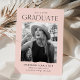Célébrez le jalon excitant de votre diplômé avec ces annonces de graduation photo moderne! Le design présente l'année de graduation en haut avec "Graduate" montré ci-dessous en lettres modernes noires. La photo du diplômé est affichée à l'intérieur d'un cadre rose vif aux bords déchirés. Personnalisez le faire-part en ajoutant le nom du diplômé, le nom de l'école et les plans futurs (collège, militaire, choix de carrière, etc.). La carte inverse pour afficher un arrière - plan rose vif.