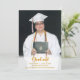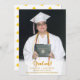 Célébrez la réalisation d'une vie avec ces annonces avec votre photo et votre texte en or sur le devant et les bouchons de graduation en or sur l'arrière. Beaucoup d'espace pour ajouter tous les détails dans les champs de texte personnalisables.