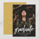Faire-part de graduation simple avec la photo du diplômé avec "diplômé" dans une police de texte blanc tendance. Personnalisez le devant du faire-part de remise de diplômes en y ajoutant le nom du diplômé, le nom de l'école et l'année de remise de diplômes. Le faire-part s'inverse pour afficher un motif de saupoudrages blancs avec un arrière - plan or ou la couleur de votre choix.