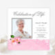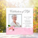 Elégante fleur de cerisier rose photo célébration de la vie mémorial annonces, invitation et insérer modèle. Cette jolie invitation aux services funéraires pour femmes de photo rose est facilement customisée pour votre événement en choisissant simplement le bouton "Customisez-le !" pour commencer à ajouter vos détails d'événement, le style de police, la taille et la couleur de police et le libellé. Veuillez noter que tous les autocollants, cartes et modèles d'invitation que vous trouverez sur Zazzle sont des graphiques imprimés sans bijoux, arcs, surélevés, gaufrés, ni pièces ou pièces ajoutées.