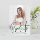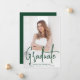 Faire-part moderne de graduation avec votre photo verticale sur le devant avec "Graduate" affiché dans une superposition manuscrite en écriture verte. Personnalisez le devant du faire-part de remise de diplômes avec le nom du diplômé, le nom de l'école et l'année de remise de diplômes. La simple faire-part de graduation inverse pour afficher une photo supplémentaire avec l'espace prévu pour inclure les plans du diplômé, les détails de la graduation, etc. Les 2 faire-part de remise de diplômes photo sont parfaits pour les diplômes du secondaire et collégial!