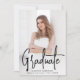 Faire-part moderne de graduation avec votre photo verticale sur le devant avec "Graduate" affiché dans une superposition manuscrite en noir. Personnalisez le devant du faire-part de remise de diplômes avec le nom du diplômé, le nom de l'école et l'année de remise de diplômes. La simple faire-part de graduation inverse pour afficher une photo supplémentaire avec de l'espace fourni pour inclure les plans futurs du diplômé, les détails de graduation, etc. Les 2 faire-part de remise de diplômes photo sont parfaits pour les diplômes du secondaire et collégial!