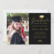 Faire-part Élégant Black Gold Formal Script Photo Graduation