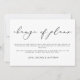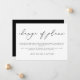 Un design simple et élégant pour annoncer un changement dans vos plans de mariage. Le design présente un titre «changement de plans» en calligraphie moderne noire, votre message en police sans empattement noire, sur fond blanc. Le verso est en noir uni.