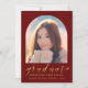 Faire-part Élégant Maroon Arch Gold Script Photo Graduation
