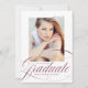 Élégant faire-part de graduation avec la photo senior du diplômé et une police de calligraphie moderne marron. Personnalisez les annonces de remise de diplômes en ajoutant le nom du diplômé, le nom de l'école et l'année de fin d'études. L'arrière des annonces de graduation du marron est orné d'un élégant marron et d'un motif de treillis blanc.