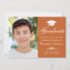 Faire-part Élégant Orange White Script Photo Graduation