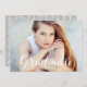 Élégant faire-part de graduation avec "Graduate" affiché dans une superposition de script blanc. Personnalisez le devant du faire-part moderne de graduation photo avec votre photo horizontale, nom et année de graduation. La faire-part s'inverse pour afficher un motif d'épine-épine gris et blanc dessiné à la main.