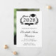 Faire-part de diplôme universitaire moderne avec "Classe de" dans l'illustration d'une couronne de laurier incorporant un haut casquette et un diplôme et le nom du diplômé dans un script élégant. Ajoutez leur école, leur majeure, leurs distinctions honorifiques ou leurs plans d'avenir. La photo du grad remplit le dos de la carte.