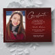 Double face, deux cartes photo modernes et élégantes de faire-part de graduation, avec des éléments de design de texte moderne avec un script manuscrit unique. Les photos du diplômé sur l'avant et l'arrière de la carte sont accentuées par une planche à dégradé délicat et minimaliste (La photo arrière est parfaitement réglée et prête à être encadrée). L'arrière - plan est un dégradé spécial, créant de belles nuances de rouge vibrantes allant du rubis au bordeaux profond. Le recto de la carte offre des espaces de texte personnalisés pour des informations sur votre graduation ou peut être reformulé pour faire de cette carte une grande invitation à la fête. Idéal pour les étudiants du secondaire, collégial et universitaire.