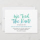 Ces cartes de faire-part en calligraphie aquarelle ont un beau décor tropical de plage. Le design amusant et énergique est composé d'une police de script d'aquarelle vert turquoise et bleu aqua ombre. Sur la carte on peut lire "Nous avons lié le noeud !". Conçu avec soin par Miriam à Fresh & Yummy Paperie. Pour la coordination des articles, veuillez visiter mon magasin Zazzle :