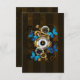 Composition de l'horloge ronde steampunk avec cadran romain noir, décoré avec des engrenages or et laiton, papillons Morpho bleu et lentilles endommagées sur arrière - plan rayé brun. Style Steampunk.