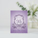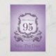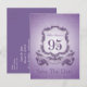 Design dans le style des armoiries en violet avec grand 95ème + "FÊTE D'ANNIVERSAIRE" sur un ruban. Conception sur carte postale verticale "Enregistrer la date" avec nom (devant) et texte à customiser (derrière). Vous pouvez facilement modifier le texte (couleur, police, taille et position) en cliquant sur le bouton personnaliser. Disponible avec design pour 60ème, 70ème, 80ème, 90ème anniversaire. Invitation d'anniversaire, livre d'anniversaire (carnet en spirale), ballotin, étiquette cadeau, fournitures de fête (serviette en papier et plaque en papier), coussin, tasse et autres cadeaux d'anniversaire pour grand-mères.