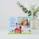 Notre faire-part de naissance photo de bébé animal de ferme est un doux moyen d'annoncer à votre famille et à vos amis que votre petit chéri est arrivé. La carte de faire-part photo présente la plus mignonne scène de ferme sur fond marron. Ajoutez votre photo et vos informations et vous êtes prêt à partir ! ©cocoa studio