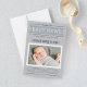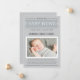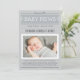 Partagez la grande nouvelle de l'arrivée de votre bébé garçon ou fille avec votre famille et vos amis avec style avec une annonce de naissance photo de style journal. La conception présente le nom de votre bébé, les détails et la photo en tant que titre et histoire principale de la une. Couleurs blanc, gris clair / argent, gris et gris charbon.