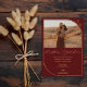 Mieux ensemble, Simple fausse feuille or et rouge bordeaux moderne élégant fiançailles 2 photos faire-part avec un cadre géométrique arrondi.